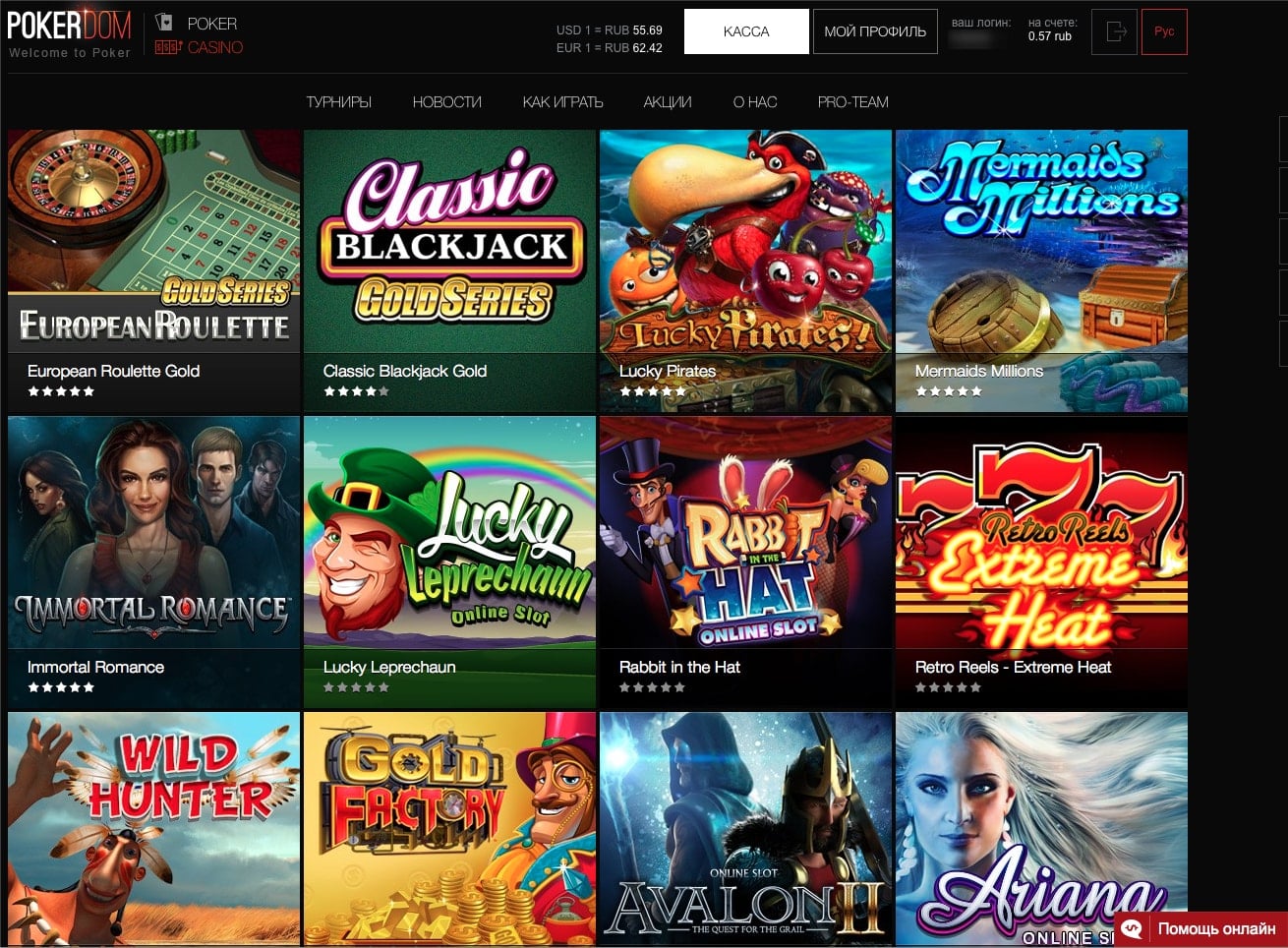 Poker DOM отлично подойдет русскоязычным пользователям. Сайт и все игры на русском языке, поддержка тоже общается на великом и могучем. Валютой своего счета можно выбрать привычный российский рубль и не терять деньги на конвертациях.
