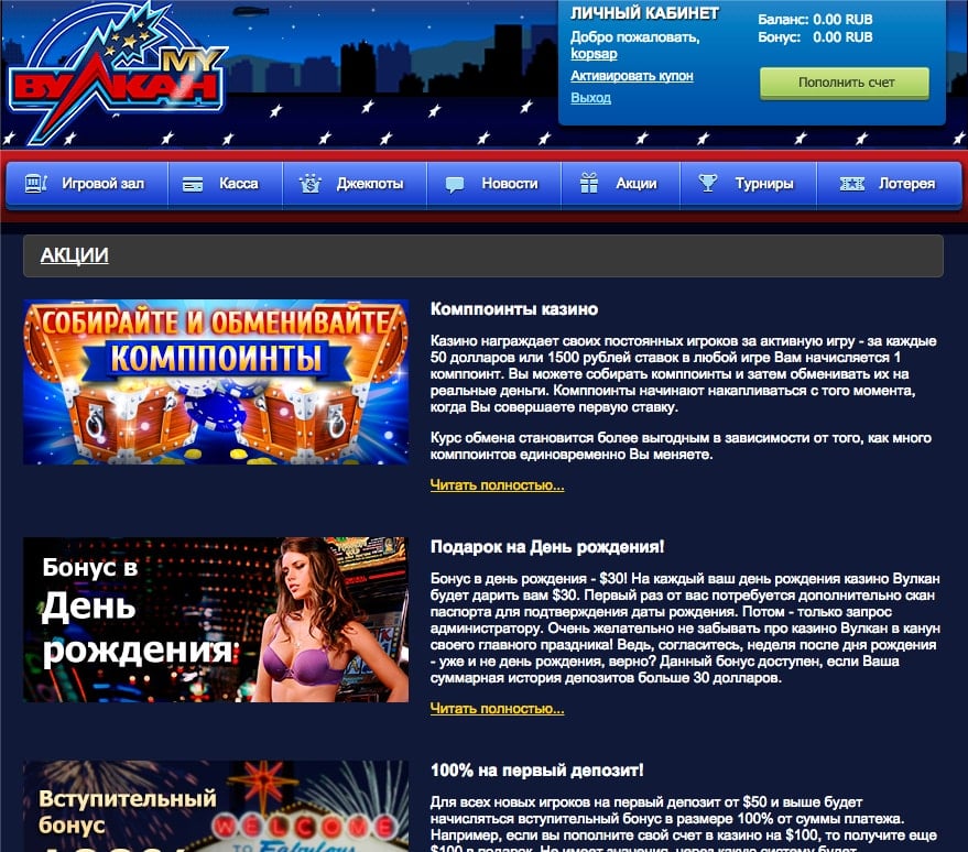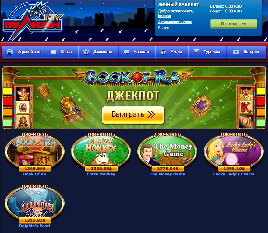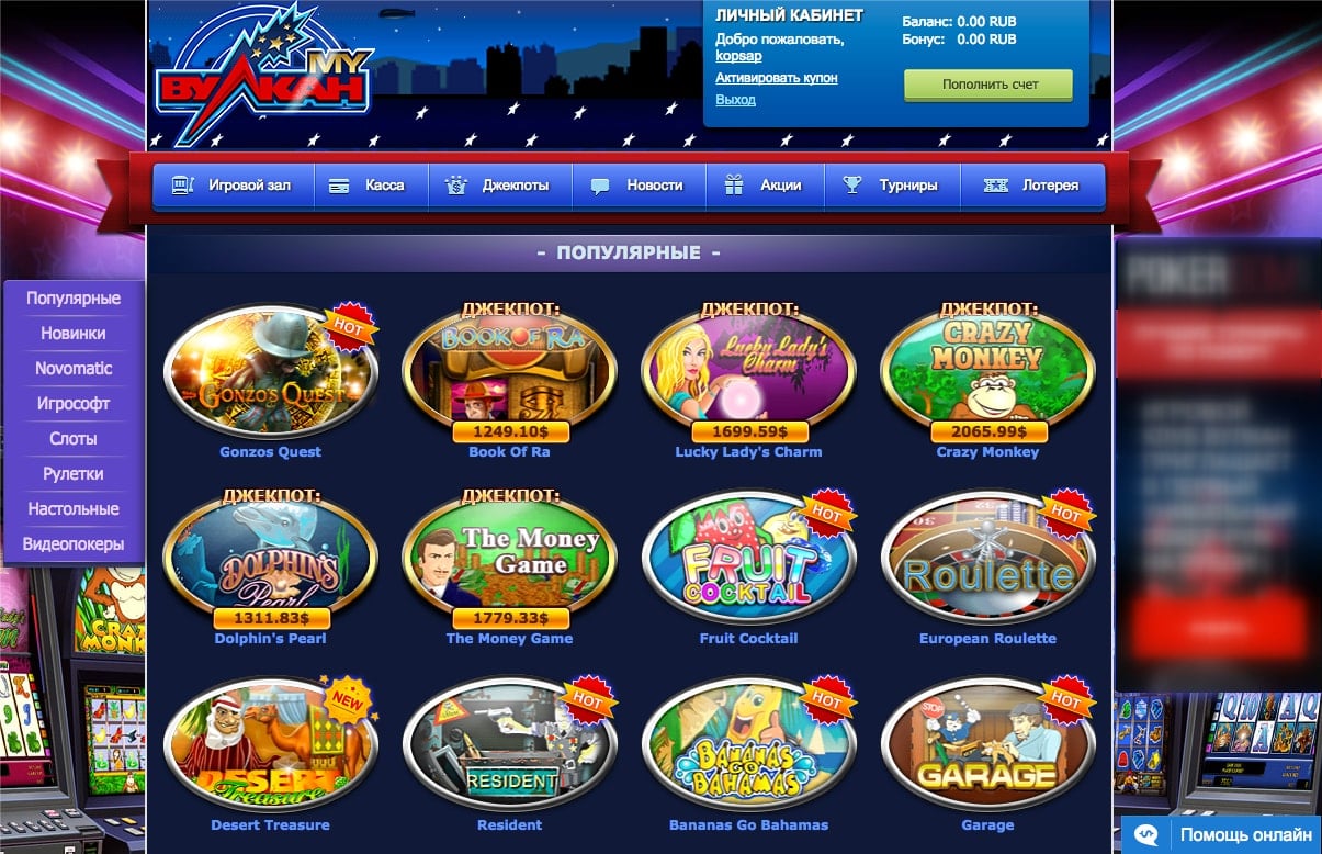 Вулкан позволит очутиться в зале казино в любой желаемый вами момент времени.Казино предлагает следующие игры: игровые автоматы, видеопокер, карточные игры, рулетка. Каждая из игр имеет множество вариантов.