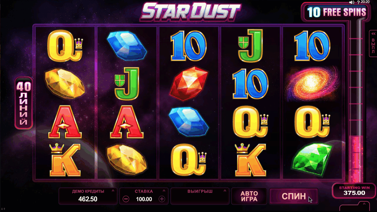 - Играйте в слот «Звездная пыль».