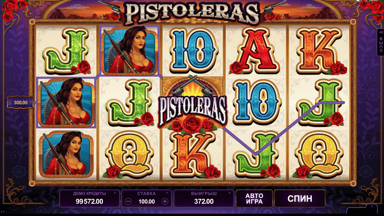 Автомат «Pistoleras» – это красотки с Дикого Запада. Пять вращающихся барабанов и 25 игровых линий, а также возможность сыграть на фантики. В игре присутствуют Скаттер и Вайлд символы для больших выигрышей и бесплатных раундов.