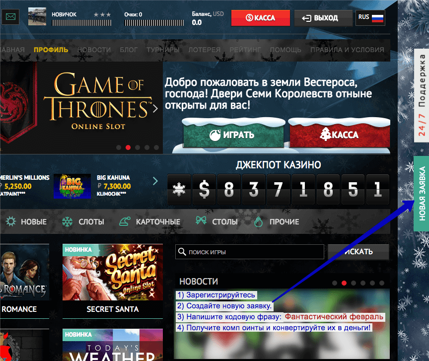 - Создайте новую заявку и напишите кодовую фразу: "Фантастический февраль".