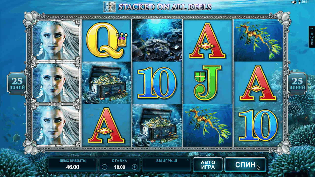 Ariana – умиротворяющее подводное царство. Пять вращающихся барабанов, три игровых ряда и 25 выигрышных линий. Дополнительные бонусы и FS благодаря вайлд и скаттер символам.