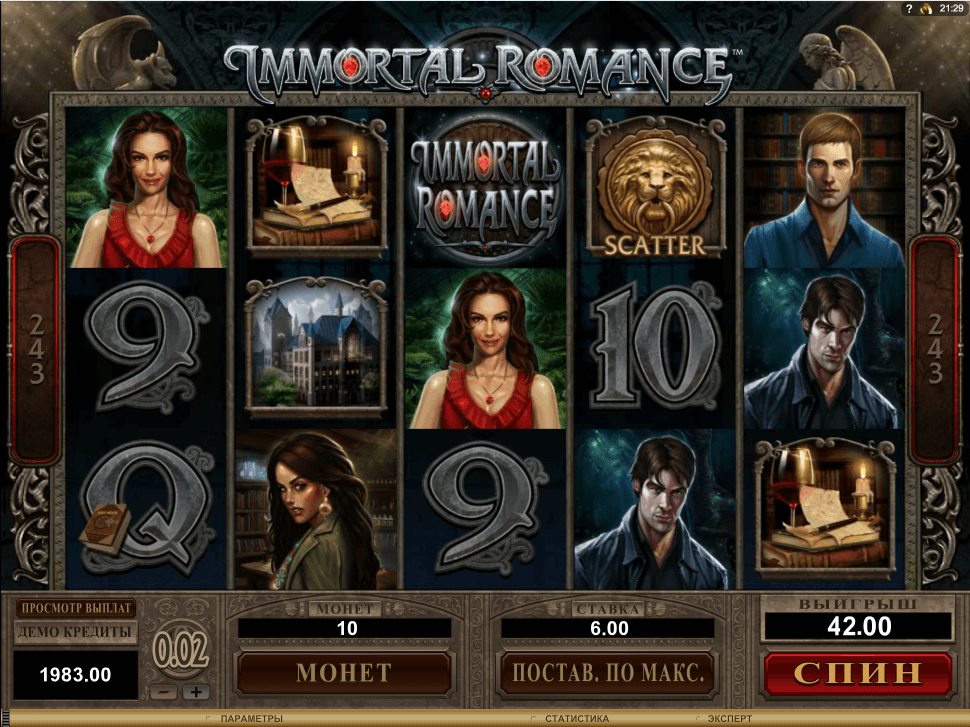 Immortal Romance – мрачноватый слот про вампиров, любовь и прочую атрибутику. Система как и в двух предыдущих слотах.